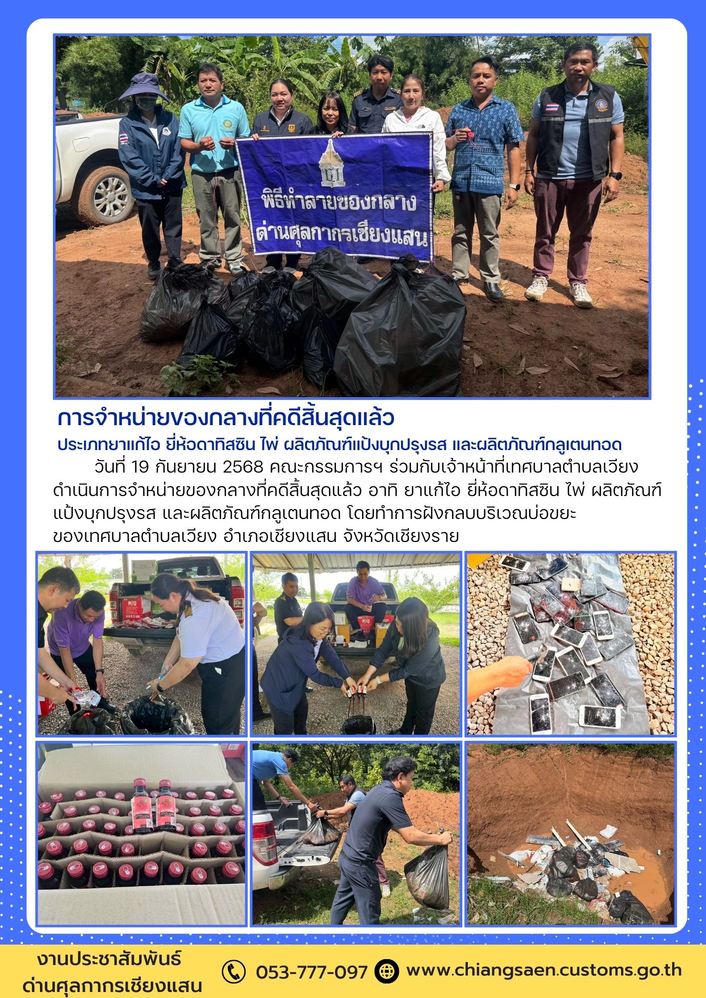 +++ด่านศุลกากรเชียงแสน ทำลายของกลาง ที่คดีสิ้นสุดแล้ว ณ ด่านศุลกากรเชียงแสน และบ่อขยะเทศบาลเวียง อำเภอเชียงแสน จังหวัดเชียงราย +++