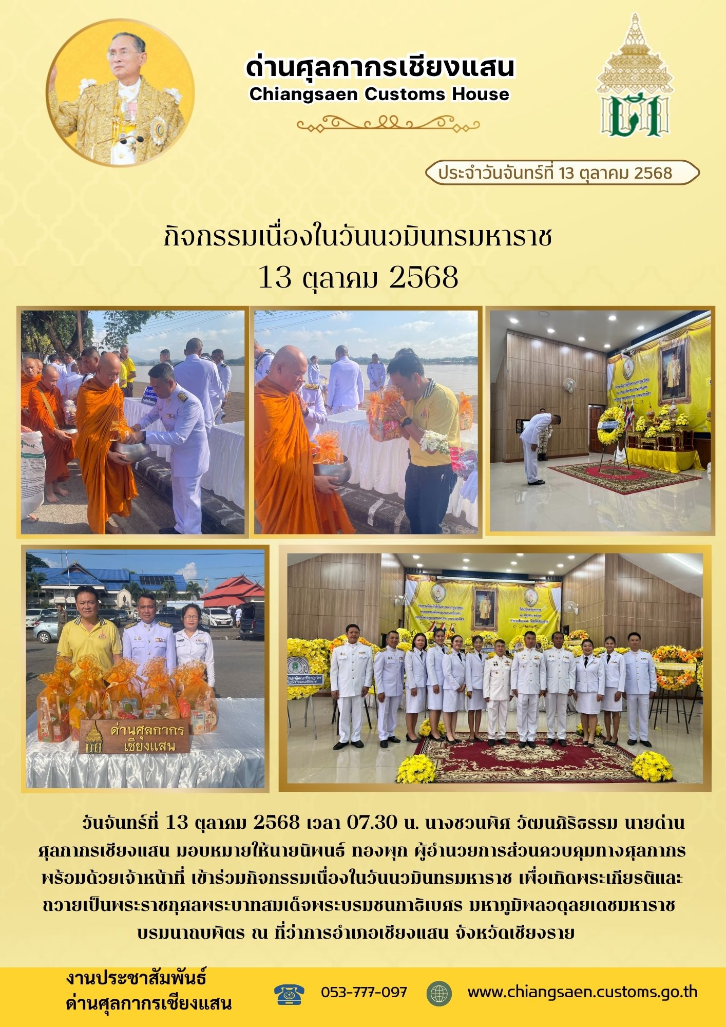 ++++ด่านศุลกากรเชียงแสน เข้าร่วมกิจกรรมเนื่องในวันนวมินทรมหาราช เพื่อเทิดพระเกียรติและ