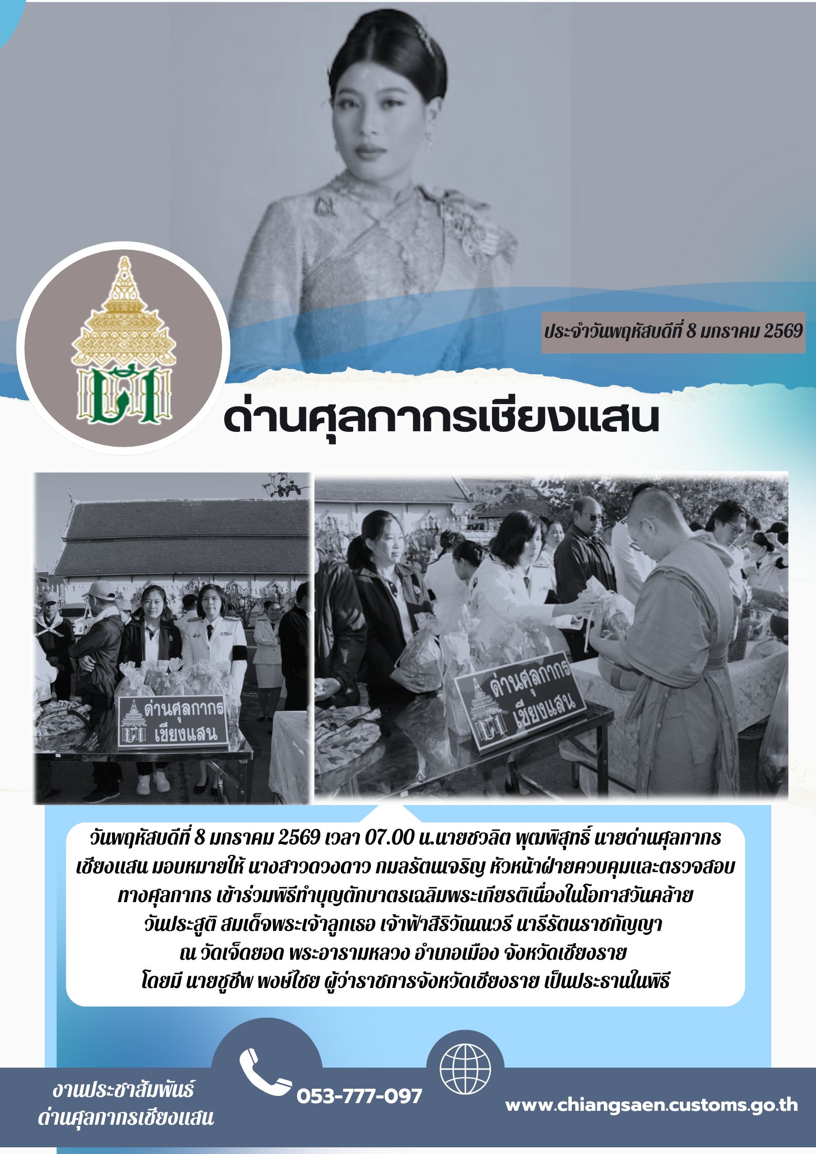 วันพฤหัสบดีที่ 8 มกราคม 2569 เวลา 07.00 น.นายชวลิต พุฒพิสุทธิ์ นายด่านศุลกากร