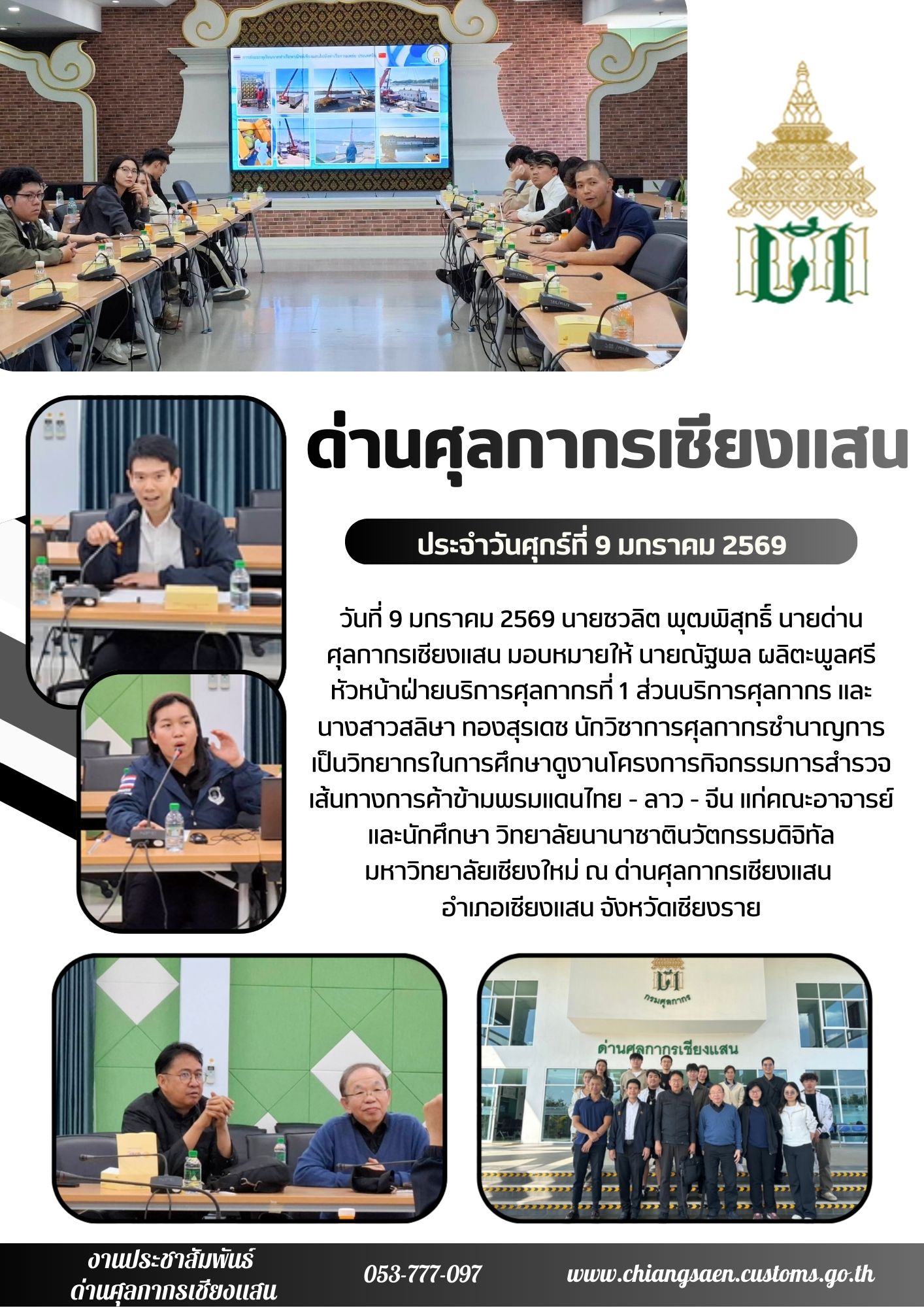 สอบถามข้อมูลเพิ่มเติมได้ที่ : ด่านศุลกากรเชียงแสน